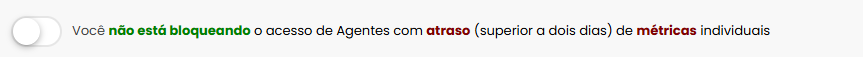 Na parte superior da tela, existe a opção de bloquear o acesso de agentes com atraso no preenchimento das métricas individuais.