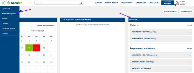 Acesse o Painel de Negócios: No menu lateral do sistema, clique em Painel de Negócios.