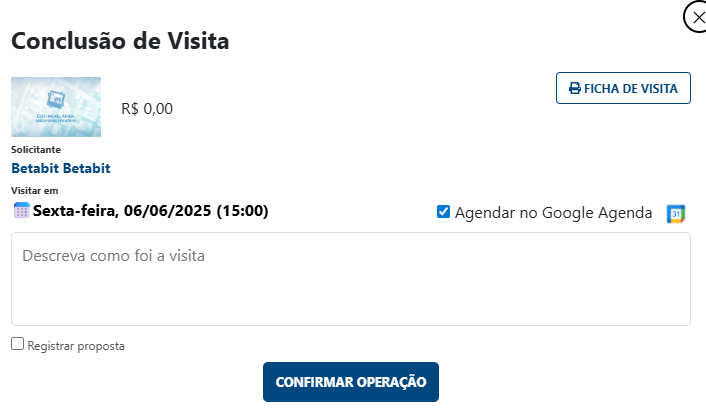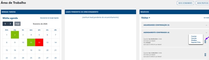 Acesse o Painel de Negócios: No quadro de Visitas, localize o agendamento que agora aparece como "Aguardando Conclusão".
