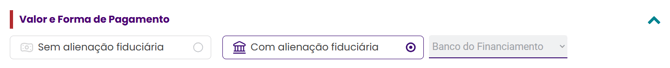 Primeiro, selecione se a transação será com ou sem alienação fiduciária (sendo com alienação é necessário preencher o banco do financiamento). Isso impacta a jornada no funil de venda e a lógica da formalização.