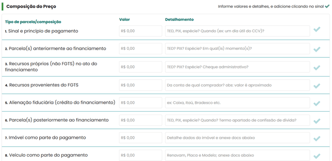📌 Atenção: Tudo o que é preenchido nesta etapa será automaticamente refletido no contrato de compra e venda gerado pela plataforma. Por isso, é fundamental preencher cada campo com atenção e validar as informações com as partes envolvidas.