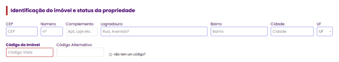 Comece preenchendo os dados de localização e identificação do imóvel:
