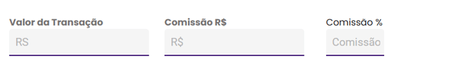 - Preencha o valor da comissão ou percentual (%) – ao preencher um, o outro será calculado automaticamente