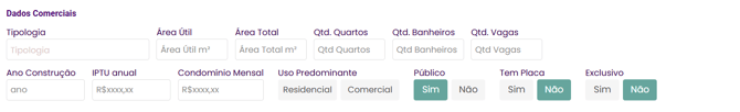 - Indicação de se o imóvel está público, com placa e se é exclusivo