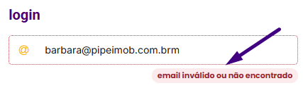 Isso significa que o sistema não reconheceu o e-mail digitado.