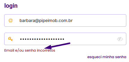 Ao tentar fazer login, podem aparecer duas mensagens diferentes. Cada uma indica um problema específico.