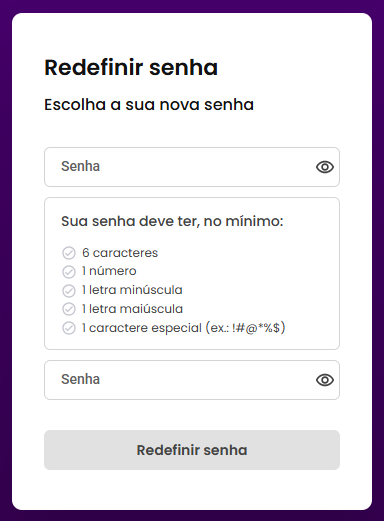 Após definir a nova senha, você poderá acessar a plataforma normalmente.
